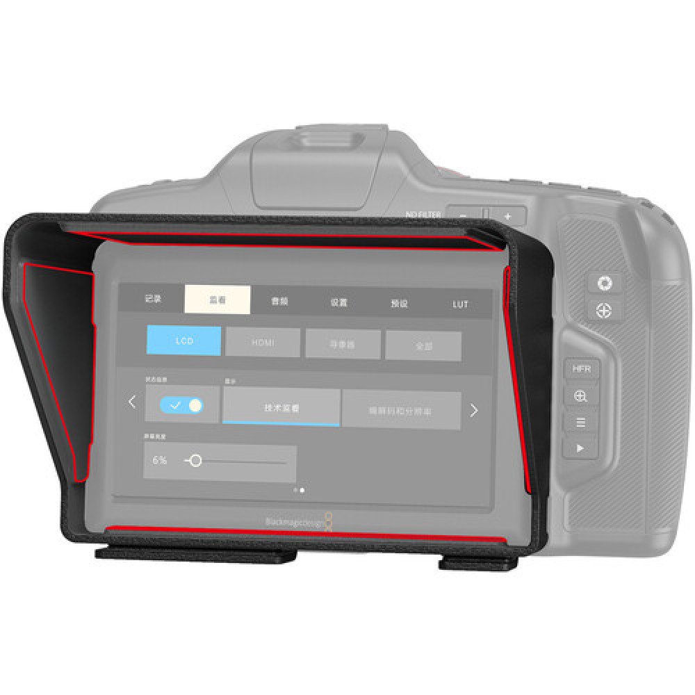 Защитите камеру Blackmagic Design Pocket Cinema Camera 6K Pro от солнечного света и бликов с помощью солнцезащитного козырька от SmallRig. Козырек просто защелкивается по бокам наклонного дисплея 6K Pro без необходимости использования инструментов и крепится с помощью встроенной ленты с липучкой.